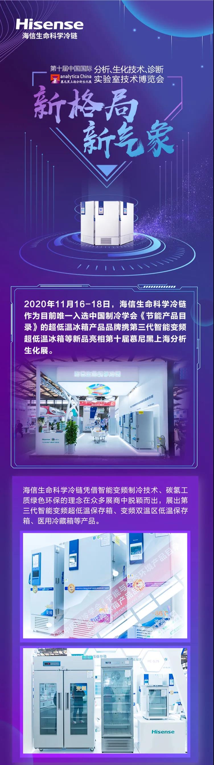 亞洲重要的分析、生化技術(shù)、診斷和實驗室技術(shù)博覽會——第十屆慕尼黑上海分析生化展(analytica China)于2020年11月16至18日再度登陸上海新國際博覽中心。作為業(yè)內(nèi)翹首以盼的行業(yè)盛事,海信生命科學(xué)冷鏈攜第三代超低溫智能產(chǎn)品閃耀亮相給與了超乎尋常的熱情與關(guān)注。