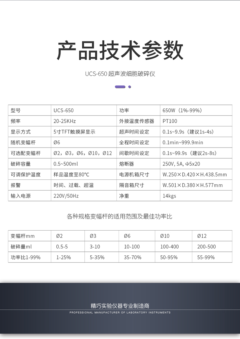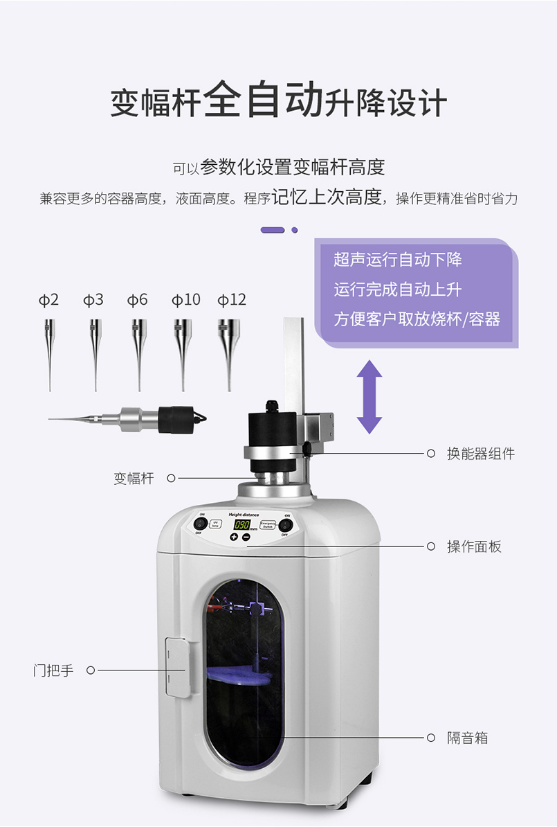 UCS-650 超聲波細胞破碎儀產(chǎn)品型號:UCS-650產(chǎn)品描述:米歐超聲波細胞破碎儀,是一種利用超聲波在液體中產(chǎn)生空化效應的多功能、多用途儀器。它能用于多種動植物、病毒、細胞、細菌及組織的破碎,同時可用來乳化、分立、勻化、提取、消泡、清洗、納米材料的植被、分散及加速化學反應等。儀器被廣泛應用于生物學、微生物學、物理學、動物學、農(nóng)學、制藥等領域的教學、科研、生產(chǎn)。